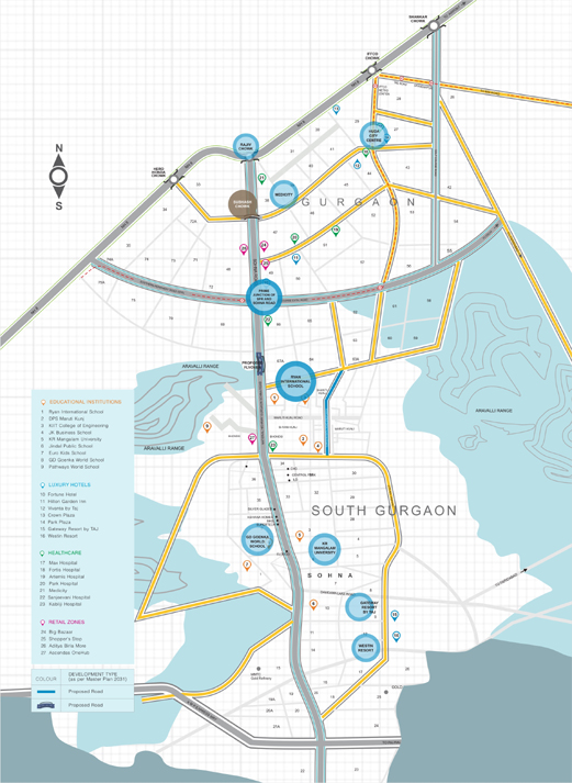 extraordinaire residences are located just 10 minutes from Golf Course Extension Road. The project enjoys great connectivity from 75 meter wide Sohna Road, which has been declared as a National Highway. World-class educational institutes such as GD Goenka World University & K.R. Mangalam University surround it.